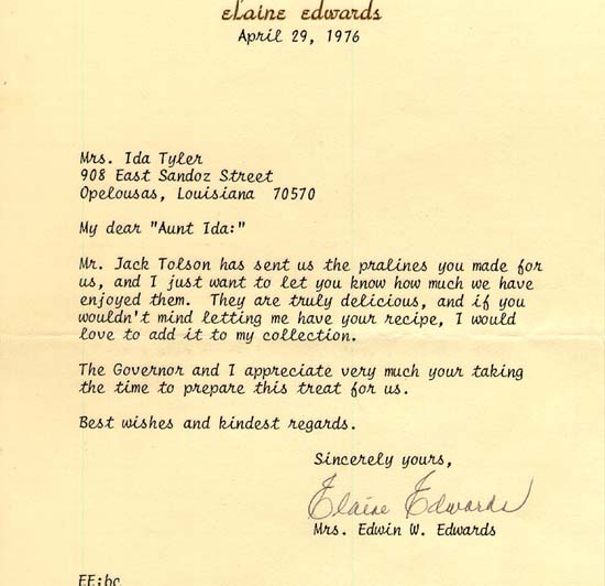 | Ida (La Grande Ida) Tyler was born in Arnaudville, LA. Her father was Rene Pierre Tyler and her mother was Marie Joachime (Josephine) Remy. Ida was the youngest child in a family of eleven children. The family farmed the land and raised crops such as cotton, corn and yams. She was a great cook who once cooked for Tony Cachere, a Cajun food and spices entrepreneur. She has a note of appreciation from a former First Lady of Louisiana , Elaine Edwards, for her wonderful praline candy. Ida was able to enjoy three grandchildren. She was well known and respected in her community. A large number of nieces and nephews influenced many friends to address her as "Aunt Ida". On her gravestone are engraved the words "Gentle Woman". |